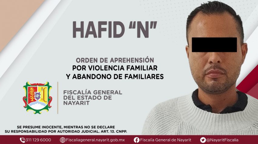 Comunicado.- En el municipio de Bahía de Banderas, la Fiscalía General de Nayarit a través de la Agencia de Investigación Criminal ejecutó dos órdenes de aprehensión contra Hafid “N”, la primera por su presuntiva responsabilidad penal en hechos que la ley califica como delito de violencia familiar.