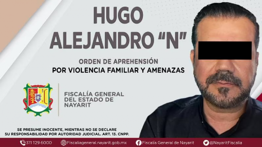 La Fiscalía General del Estado de Nayarit confirmó en un boletín que ejecutó una orden de aprehensión en contra de Hugo Alejandro “N”, por su probable participación en delitos de violencia familiar y amenazas.
