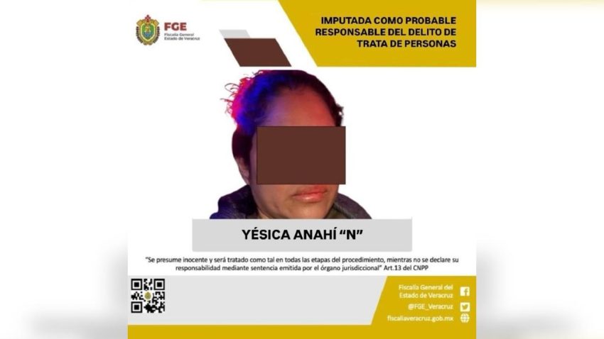 Se trata de Yésica Anahí “N” y se le señala como probable responsable del delito de trata de personas ocurrido durante los últimos días del mes de septiembre en Veracruz.