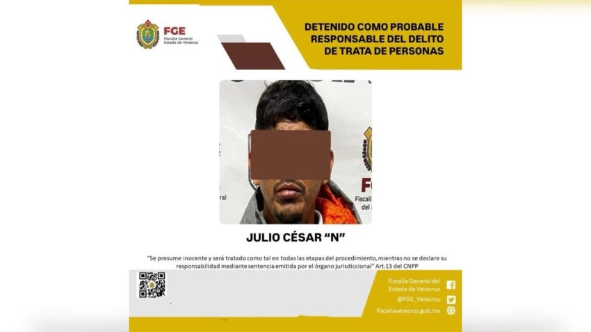 Se trata de Julio César “N” a quien las autoridades señalan como responsable de pertenecer a una red de trata de personas que opera en la zona conurbada Veracruz-Boca del Río.