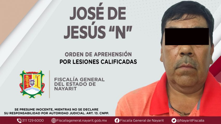Comunicado.- En el municipio de Bahía de Banderas, elementos de la Agencia de Investigación Criminal dieron cumplimiento a una orden de aprehensión que se obsequió contra José de Jesús “N”, por su probable participación en hechos que la ley califica como delito de lesiones calificadas, cometido en agravio de una persona de sexo masculino cuya identidad se reserva.