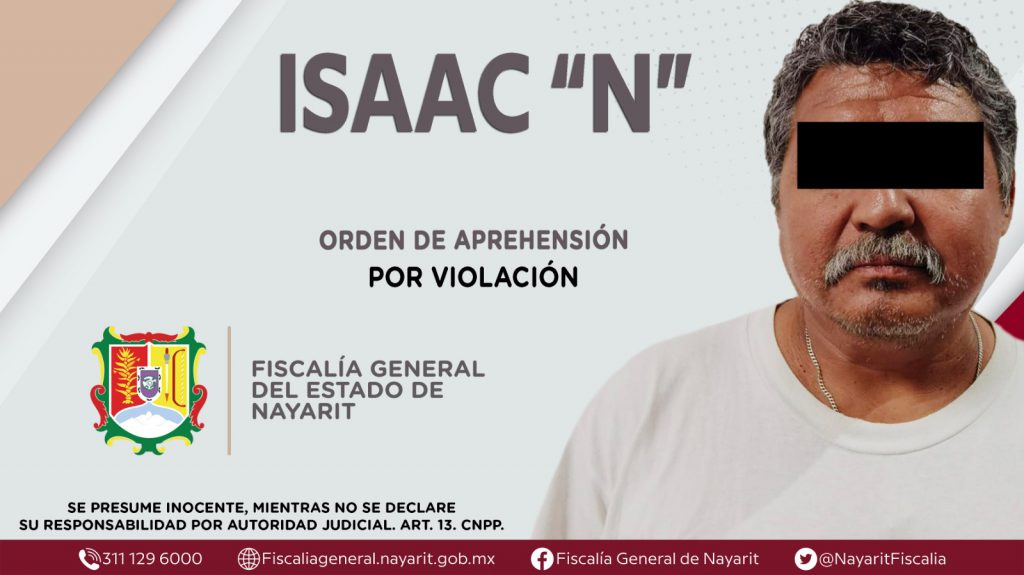 Fue hasta este sábado por la tarde, cuando la Fiscalía del Estado de Nayarit dio a conocer de manera oficial, que fue con la colaboración de la Fiscalía General del estado de Jalisco, como elementos de la Agencia de Investigación Criminal de Nayarit ejecutaron una orden de aprehensión en la ciudad de Puerto Vallarta, Jalisco contra Isaac “N”, de 51 años de edad, por su presunta participación en hechos que según apreciación de la ley encuadran el delito de violación.