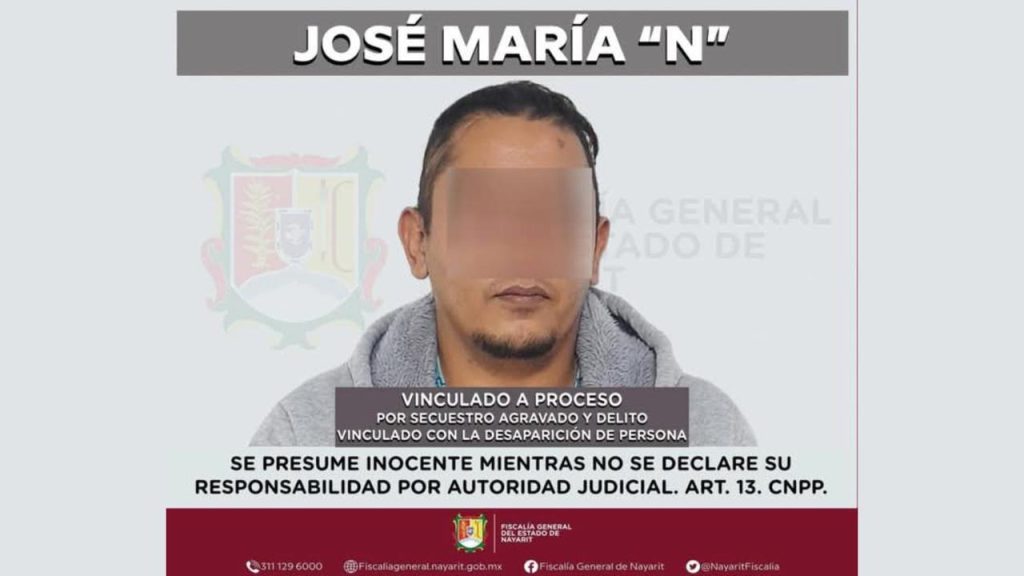 La Fiscalía General del Estado de Nayarit informó sobre la vinculación a proceso de un sujeto identificado como José María “N”, alias “Chema”, quien además ha sido señalado como ex escolta del ex fiscal estatal de Nayarit Petronilo Díaz Ponce, por su presunta participación en delitos de alto impacto.
