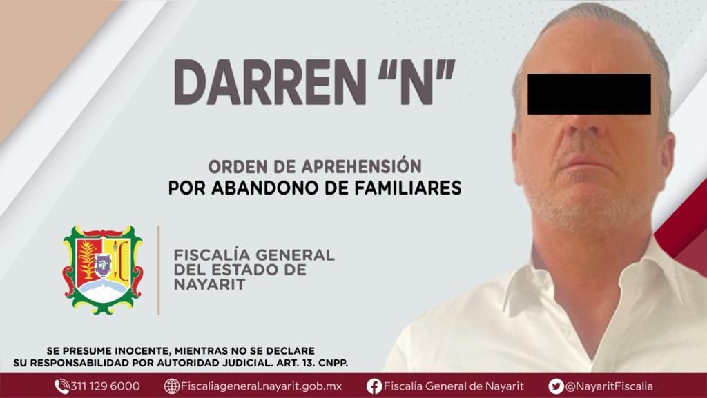 Se dio a conocer que fue a través de la Agencia de Investigación Criminal, como se ejecutó una orden de aprehensión contra Darren “N”, quien es originario de Canada y vecino de Puerto Vallarta, por su presunta participación en hechos que según apreciación de la ley encuadran el delito de abandono de familiares, cometido en agravio de dos menores de edad de identidades reservadas.