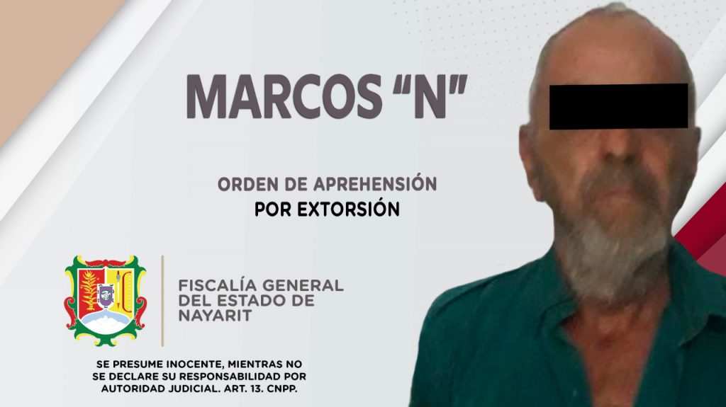 Comunicado.- Elementos de la Agencia de Investigación Criminal de Nayarit dieron cumplimiento a una orden de aprehensión en el municipio de Bahía de Banderas que se obsequió contra Marcos “N”, por su probable participación en hechos que la ley califica como delito de extorsión, cometido contra una persona de sexo masculino de identidad reservada.