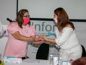 “Me siento una mujer afortunada. Por cinco años he logrado servir a mi comunidad desde este espacio, desde la presidencia de DIF y me siento feliz de lo logrado, de lo aprendido, de lo compartido, pero debo también reconocer que el reto es grande en esta sociedad que crece y se transforma cada día. Que hoy más que nunca debemos mantenernos unidas, respaldarnos, defendernos, mostrar nuestra esencia, frenar todo tipo de violencia, contra el abuso, contra la desigualdad, porque no estamos solas y todas somos una para alzar la voz”.
