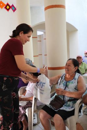 Con muestras de cariño, por parte de los integrantes del Club de la Tercera Edad “Amigos de Corazón” de Sayulita, fue recibida la LTS. Ana Esperanza Berumen de Cuevas, presidenta del Sistema DIF de Bahía de Banderas, quien de manera sorpresiva visitó a los adultos mayores, con el objetivo de saludarlos y hacerles entrega de 70 sillas y seis tablones, como parte de la respuesta a las necesidad de esta agrupación que cuentan con más integrantes.