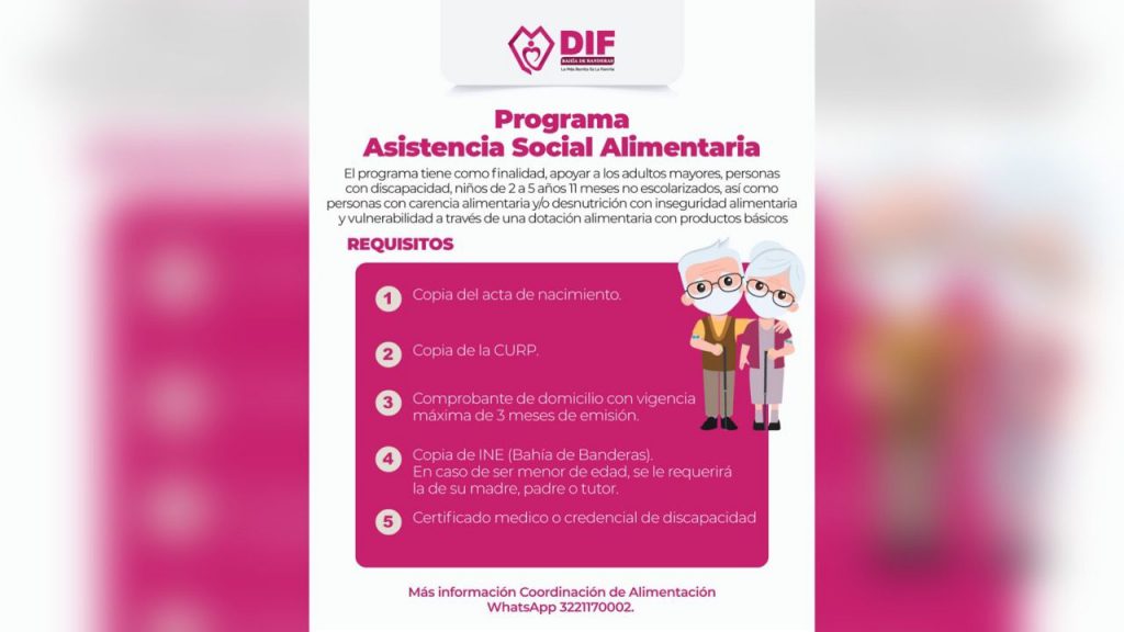 DIF municipal abre sus puertas para quienes estén interesados puedan acudir a las oficinas de la institución, con una copia de acta de nacimiento, CURP, copia de Credencial de Elector (con domicilio de Bahía de Banderas), así como un certificado médico o constancia discapacidad, misma documentación para ambos programas.