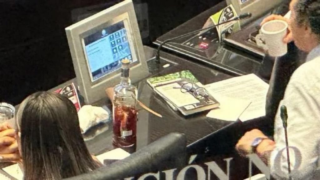 CIUDAD DE MÉXICO (apro).- El diputado federal morenista Hirepan Maya fue sorprendido con una botella de vodka en un escaño del Senado, durante la sesión de este miércoles de la Comisión Permanente del Congreso de la Unión.