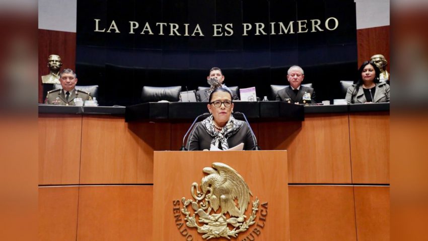 Ciudad de México. La titular de la Secretaría de Seguridad y Protección Ciudadana (SSPC), Rosa Icela Rodríguez, destacó ayer desde el pleno del Senado que en México hay un gobierno civil y un Ejército de paz que no persigue ni criminaliza, sino que protege a la sociedad, por lo que carece de sustento la afirmación de los opositores de que el país avanza a la militarización. Explicó: “la paz es asunto de Estado”.