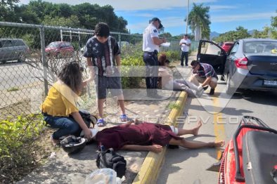 Dos lesionados en accidente frente a la Mega de Bucerías