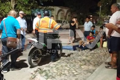 Una persona de la tercera edad, resultó lesionado luego de ser atropellado por una motocicleta, quien fue llevado a recibir atención médica de urgencia a una clínica particular donde lo estabilizaron y de ahí lo trasladaron al Seguro Social de Mezcales, siendo atendido en el lugar, el conductor de la moto, quien solo resultó con lesiones menores.
