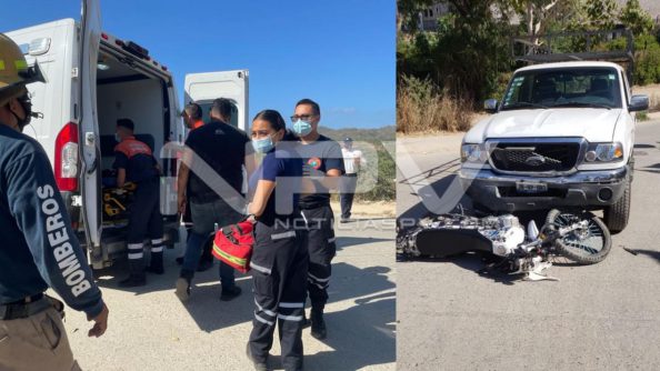 Dos personas resultaron lesionadas luego de que al viajar a bordo de una motocicleta, chocaron con una camioneta en la colonia Francisco Javier Ovando en Bucerías.