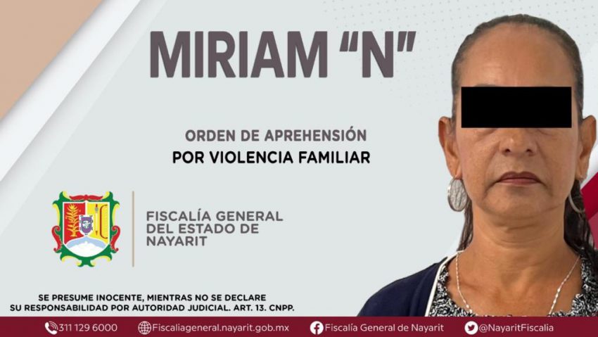 Además se cumplimentó una orden de aprehensión en el municipio de Bahía de Banderas contra Miriam “N”, por su presunta participación en hechos que bajo la apreciación de la ley configuran el delito de violencia familiar, cometido en agravio de una persona de sexo masculino de identidad reservada.