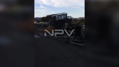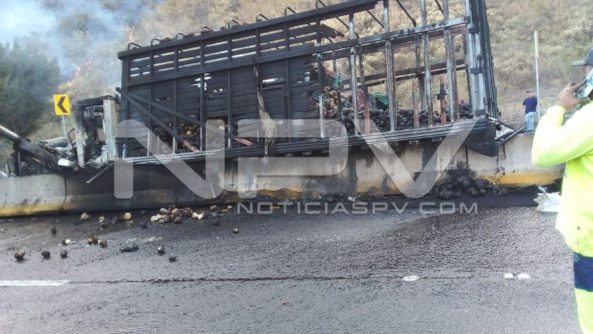 Los hechos ocurrieron en la autopista Tepic-Guadalajara a la altura del kilómetro 110, en donde se registró un incendio originado por un choque entre un trailer que transportaba jicamas y uno más con una cama baja que transportaba maquinaria.