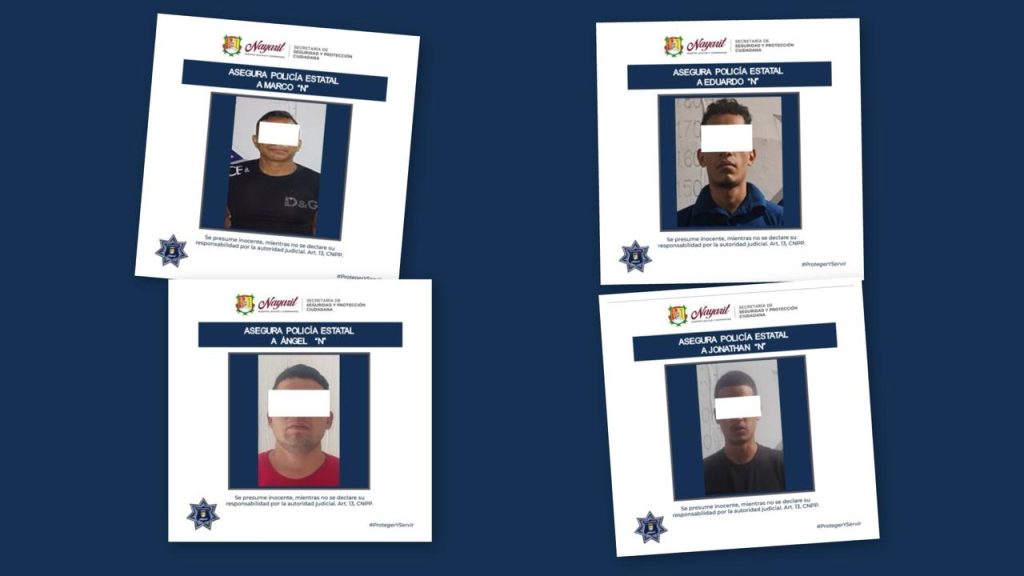En el marco de los operativos de vigilancia y prevención del delito implementados por la Secretaría de Seguridad y Protección Ciudadana (SSPC), elementos de la Policía Estatal lograron el aseguramiento de cuatro personas por su presunta participación en distintos hechos delictivos registrados en el municipio de Bahía de Banderas.