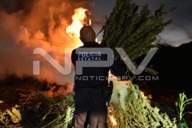 En el predio de «El Perico», del poblado Amado Nervo, en San Pedro Lagunillas, elementos de la SSPC, adscritos a la Unidad de Aéreo y Vigilancia, lograron la localización, aseguramiento y destrucción de un sembradío de Marihuana, donde realizaron los trámites correspondientes ante la autoridad competente.