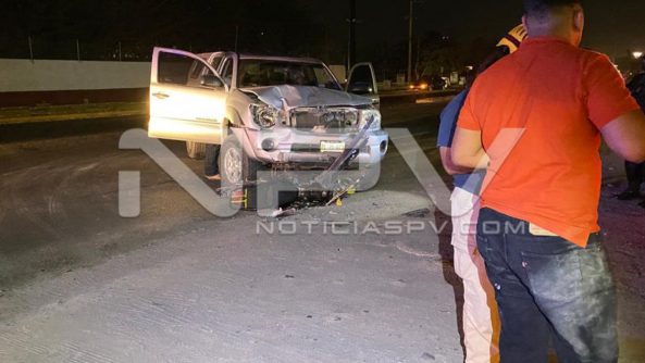 El conductor de la moto de nombre Antony Mendez, de 19 años, quien dijo ser vecino de Valle de Banderas, resultó con lesiones en su cuerpo, aunque no de gravedad, esto luego de ser arrollado de frente por la camioneta Tacoma que conducía Remberto Macías, de 48 años de edad ,con domicilio en la colonia El Manglar’ en San José del Valle’ del cual manifestaron también que además circulaba en exceso de velocidad, donde se le atravesó en su camino al de la moto.