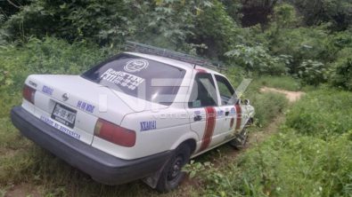 Hasta ese sitio se dirigieron los agentes de La Policía Estatal Preventiva a bordo de sus unidades quienes al arribar a la carretera que conduce al poblado El Cuarenteño, a aproximadamente un kilómetro rumbo al Miramar, se dieron cuenta que ahí se encontraba a 10 metros de la carpeta asfáltica un taxi de color blanco con franjas tintas con número económico NXA-0141 y placas de circulación 96-08-MDE del estado de Nayarit.