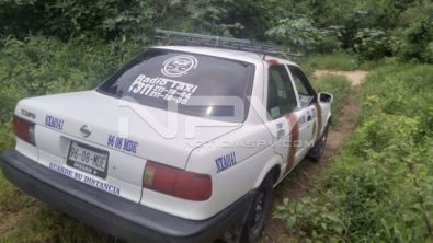Hasta ese sitio se dirigieron los agentes de La Policía Estatal Preventiva a bordo de sus unidades quienes al arribar a la carretera que conduce al poblado El Cuarenteño, a aproximadamente un kilómetro rumbo al Miramar, se dieron cuenta que ahí se encontraba a 10 metros de la carpeta asfáltica un taxi de color blanco con franjas tintas con número económico NXA-0141 y placas de circulación 96-08-MDE del estado de Nayarit.