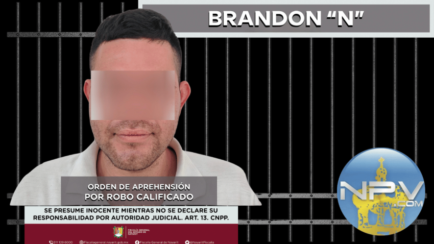 Agentes de la Fiscalía General de Nayarit, a través de la Agencia de Investigación Criminal, cumplimentaron una orden de aprehensión en contra de Brandon “N” por su presunta responsabilidad en el delito de robo calificado.