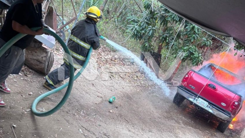 Los hechos ocurrieron el pasado lunes en la localidad de San Pancho, donde se reportó el incendio de una camioneta dentro de un domicilio.