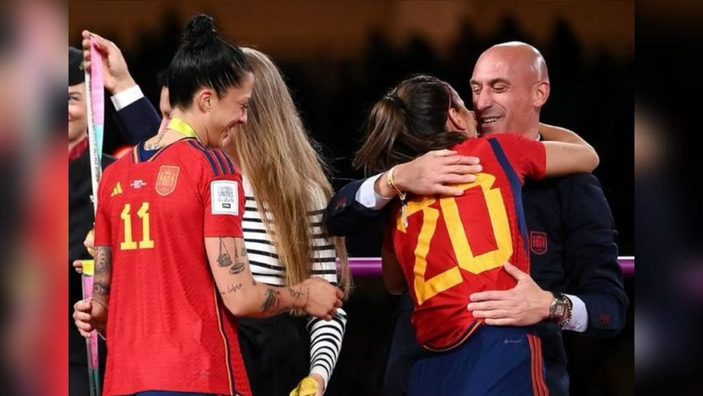 Madrid. La escena dura una fracción de segundo, pero ha sido suficiente para provocar la indignación de medio país. El presidente de la Federación Española de Futbol (FEF), Luis Rubiales, estaba en el estrado en el momento de entregar las medallas a las jugadoras de la Selección española que acababan de ganar su primera Copa del Mundo. Él mismo, junto a otros directivos internacionales y teniendo a un costado a la Reina Letizia y a su hija, la Infanta Sofía, van dando abrazos al tiempo que entregar las preseas a las jugadoras, pero cuando le tocó el turno a una de las futbolistas más queridas y admiradas del equipo, la madrileña Jennifer Hermoso, quien además es jugadora del Pachuca, Rubiales primero le dio un fuerte abrazo y un beso en la mejilla, pero cuando ya se iba la sujetó de nuevo con firmeza por el cuello, le miró a los ojos y le propinó un beso en los labios mientras sus manos impedían que apartara su boca.