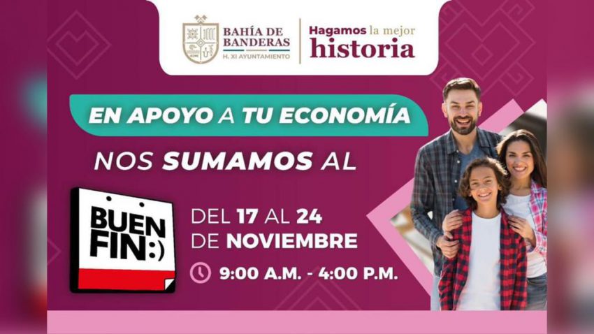 Bahía de Banderas, Nay. 17 de noviembre de 2023.- Con motivo de la campaña Buen Fin, el XI Ayuntamiento de Bahía de Banderas emitió diversas disposiciones administrativas con el fin de ofrecer diversos beneficios a la ciudadanía para que regularice su situación respecto de las obligaciones relativas al pago de los derechos municipales.