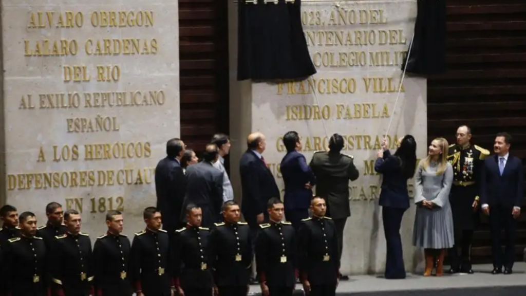 Con apenas 190 legisladores presentes, la Cámara de Diputados develó en sus muros con letras de oro la leyenda 2023 Año del bicentenario del Heroico Colegio Militar, en una sesión solemne donde el general secretario de la Defensa Nacional, Luis Cresencio Sandoval González, afirmó desde la tribuna legislativa que el Ejército “seguirá siendo uno de los pilares fundamentales de la estabilidad, de la democracia y de la unidad nacional”.