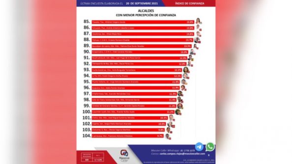Se trata de una cifra histórica, pues al ser comparado con la misma que se realizó el 20 de septiembre de 2021, podemos ver que la administración de Jorge Antonio Quintero fue posicionada hasta el puesto 72.