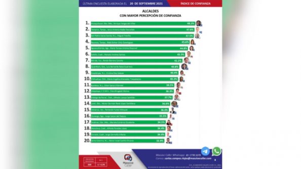 Otro dato importante destacado, es que el Profe Michel se disputa el primer lugar de aprobación en el estado de Jalisco con Pablo Lemus, alcalde de Guadalajara, quien apenas está 4 posiciones arriba del vallartense; por su parte Zapopan, con Juan José Frangie, se coloca a más de 20 peldaños por debajo de ambos municipios.