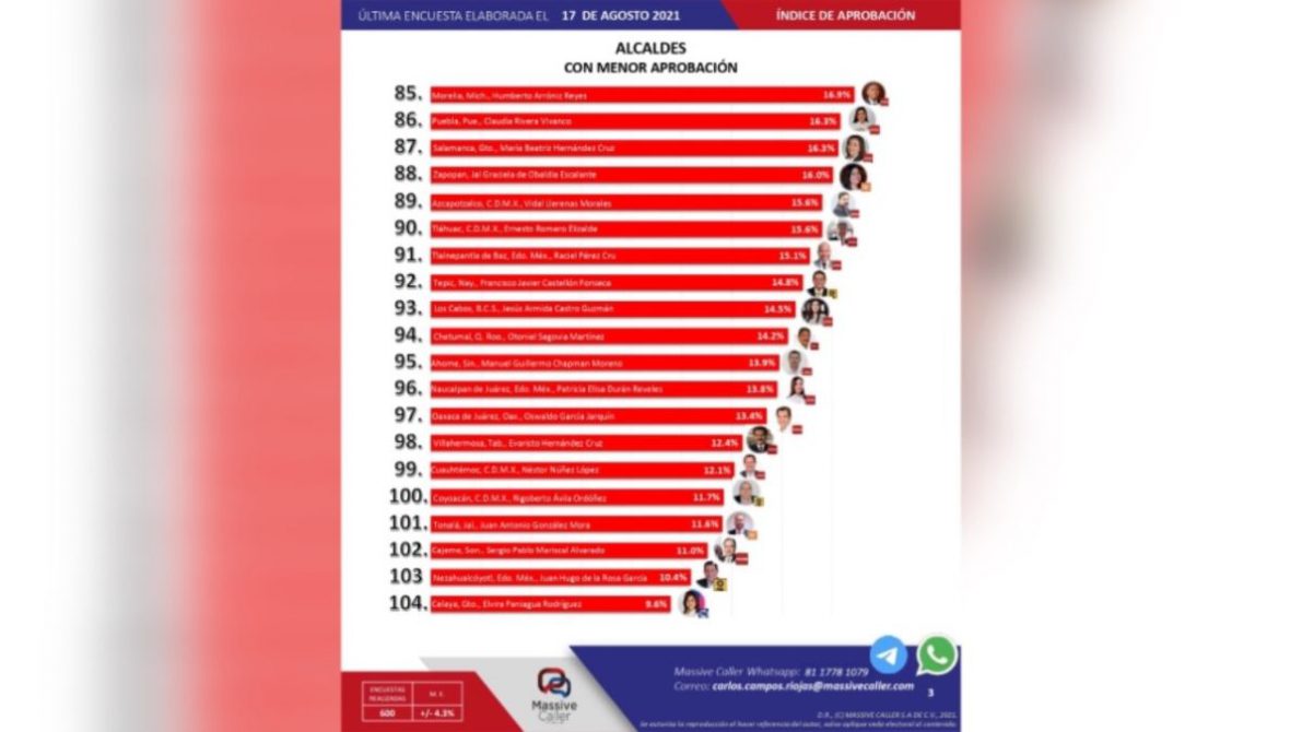 Se trata de una cifra histórica, pues al ser comparado con la misma que se realizó el 20 de septiembre de 2021, podemos ver que la administración de Jorge Antonio Quintero fue posicionada hasta el puesto 72.