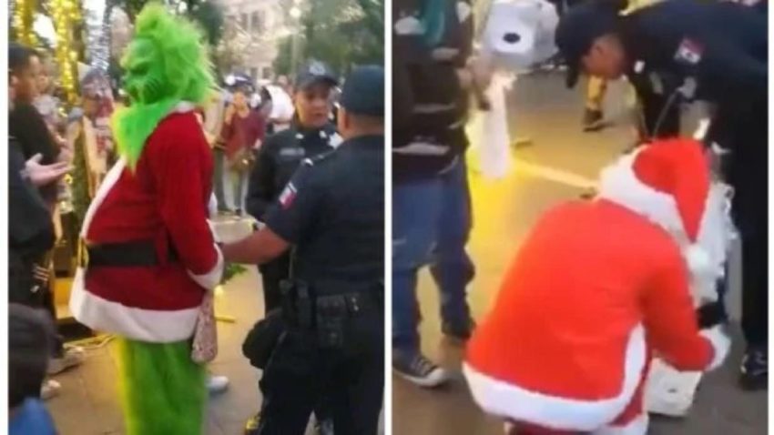 CIUDAD DE MÉXICO (apro) .- En redes sociales circula un video del momento en que dos personas fueron detenidas mientras portaban disfraces de los personajes navideños: “El Grinch” y “Santa Claus”.