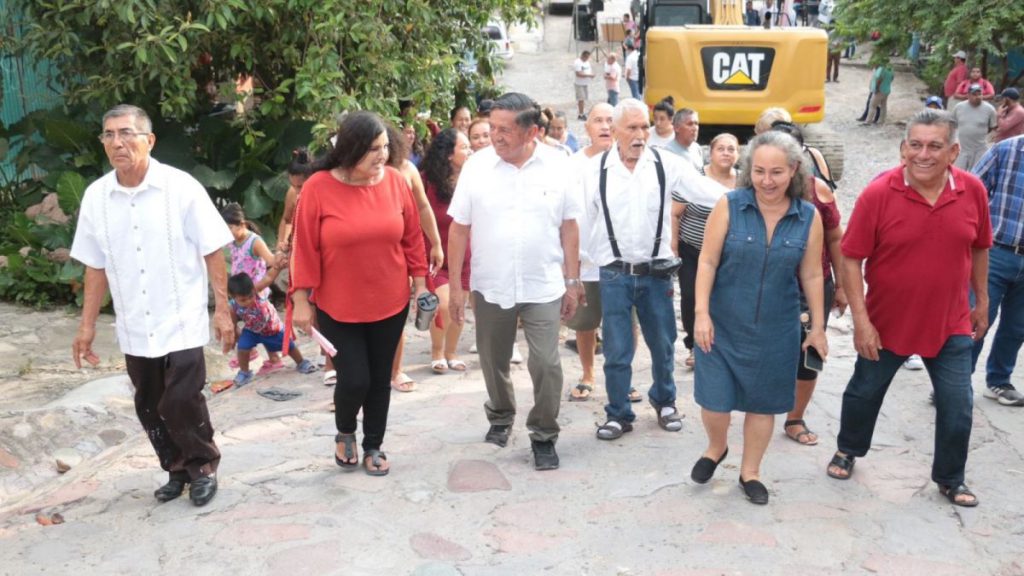 El Profe Michel encabezó el banderazo de arranque de esta obra a base de empedrado ahogado en mortero con huellas de concreto estriado, con inversión superior a 3.6 MDP