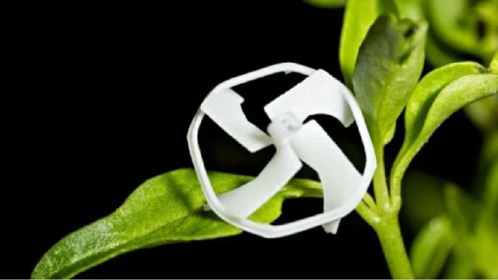 El robot tiene la forma de una pequeña hélice e incluye dos pequeños imanes. Bajo la influencia de un campo magnético externo, estos imanes se atraen y repelen, lo que hace que la hélice gire y genere suficiente sustentación para elevar al robot del suelo. La trayectoria de vuelo del robot se puede controlar con precisión modulando la intensidad del campo magnético.