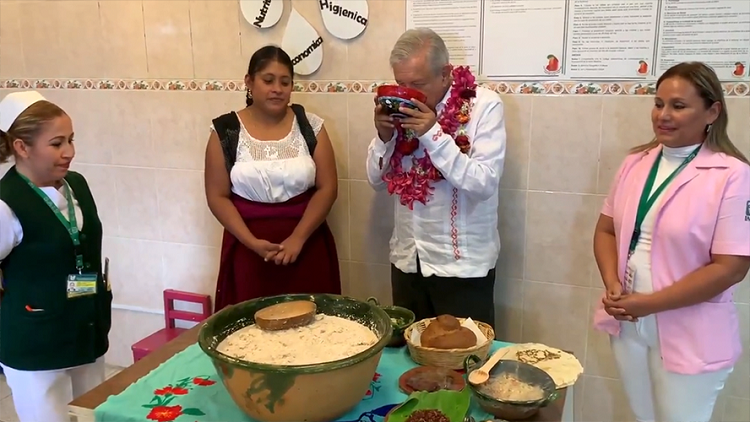 El mandatario destacó las propiedades de la comida tradicional mexicana durante su visita al hospital rural de Tlacolula, Oaxaca.