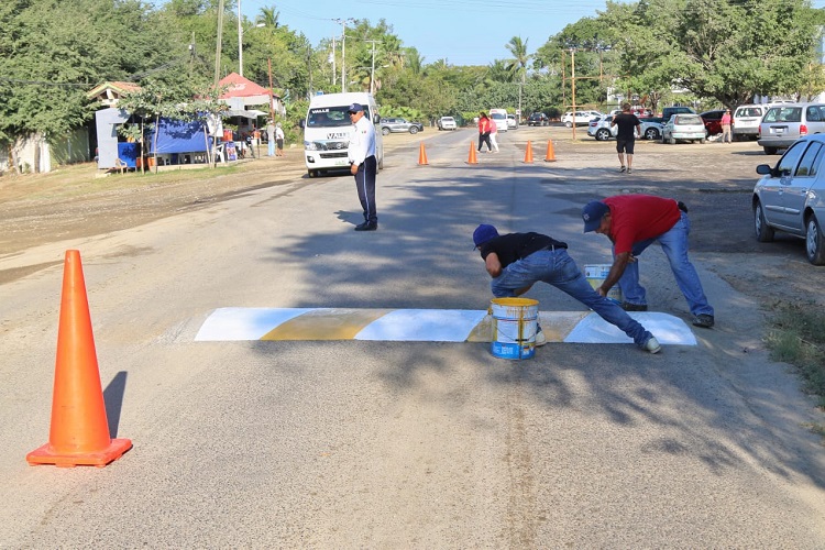 En el marco de sus Fiestas Patronales, la Dirección de Servicios Públicos Municipales realizó trabajos de embellecimiento en el Arco que resguarda a la Virgen del Rosario del Tintoque, patrona de la cabecera municipal de Bahía de Banderas, además de balizamiento y pintura en reductores de velocidad, contando con todo el apoyo del equipo de trabajadores tanto de Servicios Públicos como de la Subdirección de Tránsito Municipal.