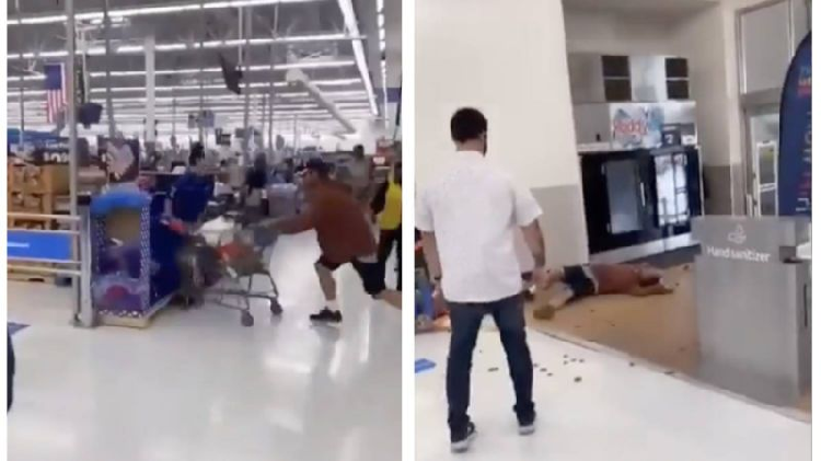Empleado de Walmart noquea a un cliente que lo agredió y escupió (Video)