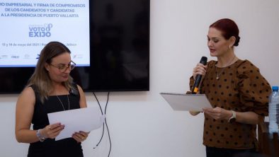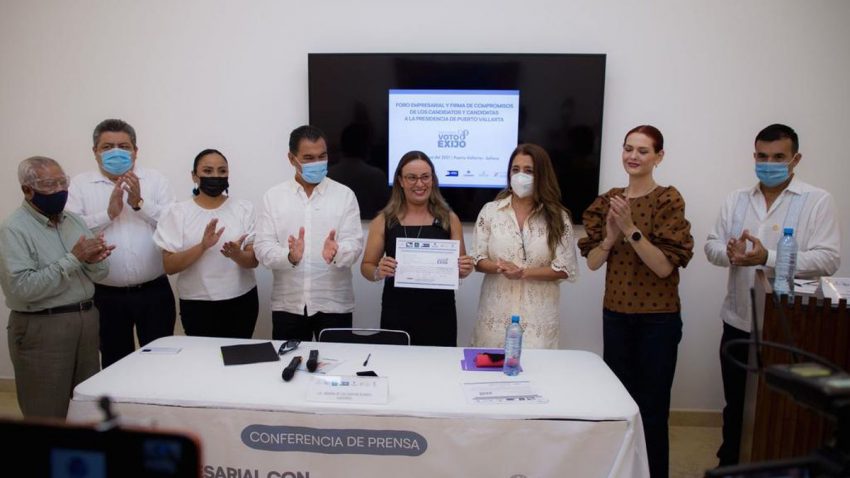 “Mi administración sí estará a la altura de la clase empresarial de Puerto Vallarta”, enfatizó la candidata de Hagamos en el Foro Empresarial #ParticipoVotoExijo, convocado en conjunto por la Coparmex, Canacope, Canaco Servytur y otros organismos locales, y que incluyó la firma de siete ejes prioritarios para el sector empresarial.