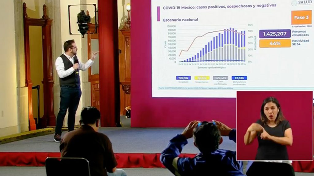 Ciudad de México. Ricardo Cortés, director general de Promoción de la Salud, informó que los contagios confirmados de Covid-19 en México suman 629 mil 409, con 6 mil 319 nuevas casos en las últimas 24 horas, mientras que los decesos aumentaron en 475, para un registro acumulado de 67 mil 326.
