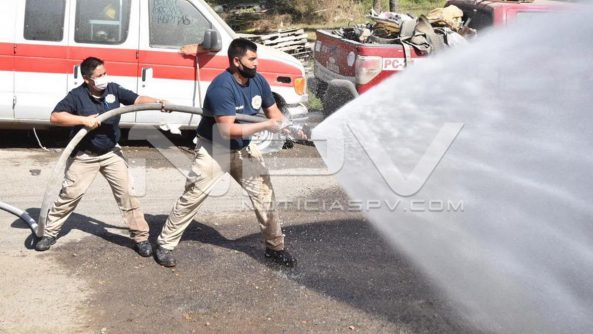 El personal de Protección Civil y Bomberos de Bahía de Banderas, llevó a cabo en esta ocasión, la práctica de entrenamiento en el tema del tipo de chorros de agua que se deben de utilizar ante un incendio.