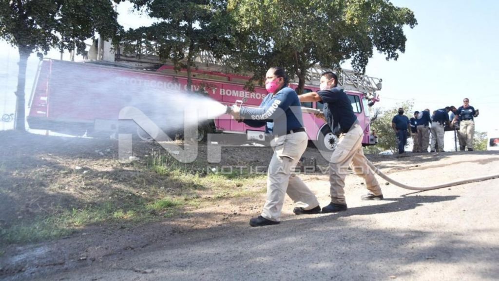 El personal de Protección Civil y Bomberos de Bahía de Banderas, llevó a cabo en esta ocasión, la práctica de entrenamiento en el tema del tipo de chorros de agua que se deben de utilizar ante un incendio.
