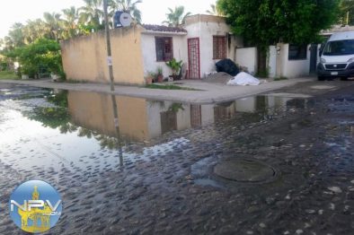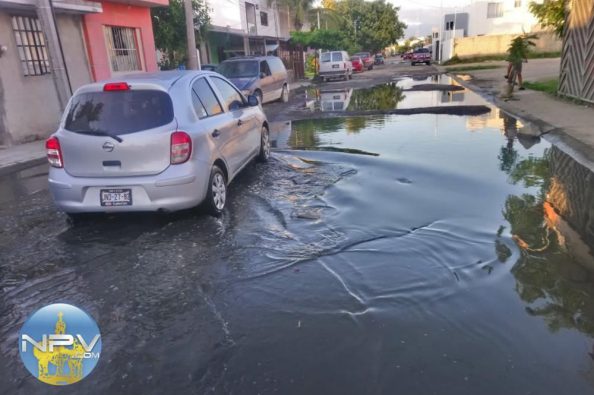 Un grave problema de contaminación ambiental provocado por aguas negras está padeciendo vecinos de Valle Dorado, Bahía de Banderas, Nayarit en las calles Valle Aosta y Valle Grande donde se ubica el registro del drenaje que desde hace más de dos semanas presenta fuga de aguas negras que se han estancado en enormes baches que hay en esa calle Aosta de banqueta a banqueta por lo que el olor característico se transformó en todavía más desagradable al convertirse en lodos.