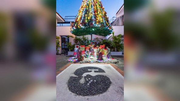 Al momento de encender las luces multicolores del árbol de más de 8 metros de alto que alberga el tradicional nacimiento, deseó una feliz navidad, en la que reine la esperanza, amor y alegría en familia, priorizando el cuidado de los adultos mayores y personas vulnerables durante los festejos.