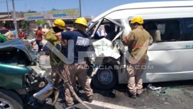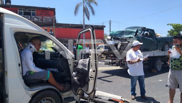Hasta ese sitio llegaron los agentes de Tránsito Municipal a bordo de sus unidades quienes informan que se trata de un choque entre un taxi colectivo de la ruta Valle de Banderas – Nuevo Vallarta, de la marca Toyota, Hiace, tipo Urvan, de color blanco con placas 94-21-MDE de Nayarit y una camioneta Ford, Ranger, de color verde, con placas JT-43-373 de Jalisco, donde se apreciaban personas lesionadas, dos de ellas que estaban atoradas entre las fierros retorcidos de la unidad del transporte público.