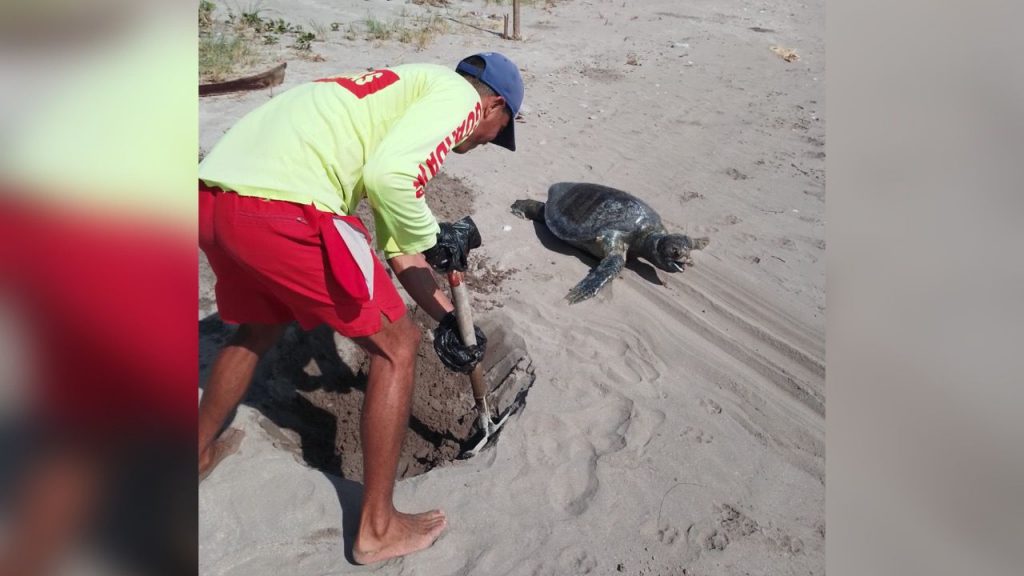 Tepic, Nayarit; 30 de octubre de 2022.- En atención a un reporte ciudadano, donde se mencionara el avistamiento de una tortuga muerta en la playa Bahía de Matanchén del municipio de San Blas.