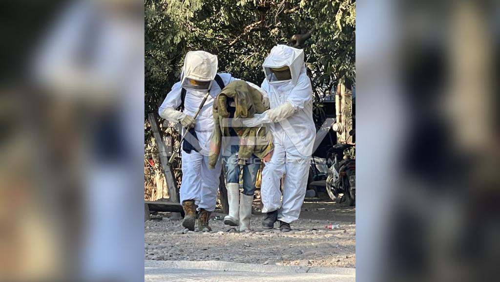 El personal de Protección Civil de Bahía de Banderas procedió a equiparse con trajes de apicultor para realizar el rescate de las personas atrapadas.