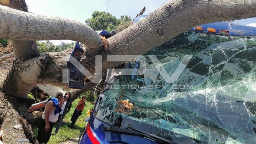 Enorme árbol cayó encima de autobús en carretera 200