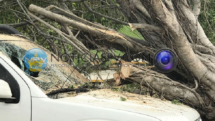 Los hechos ocurrieron alrededor de las 5 y media de la tarde. Al lugar arribaron elementos de Protección Civil de Nayarit, quienes se dieron a la tarea de quitar el árbol sobre la camioneta y con sierra cortar las ramas para posteriormente limpiar el área dl estacionamiento.