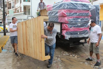Acompañado por el director de Desarrollo Social, Víctor Bernal Vargas y colaboradores de la dependencia, el primer edil hizo una primera entrega de bases para cama, colchones, estufas, refrigeradores y ventiladores, a 11 de las familias afectadas.